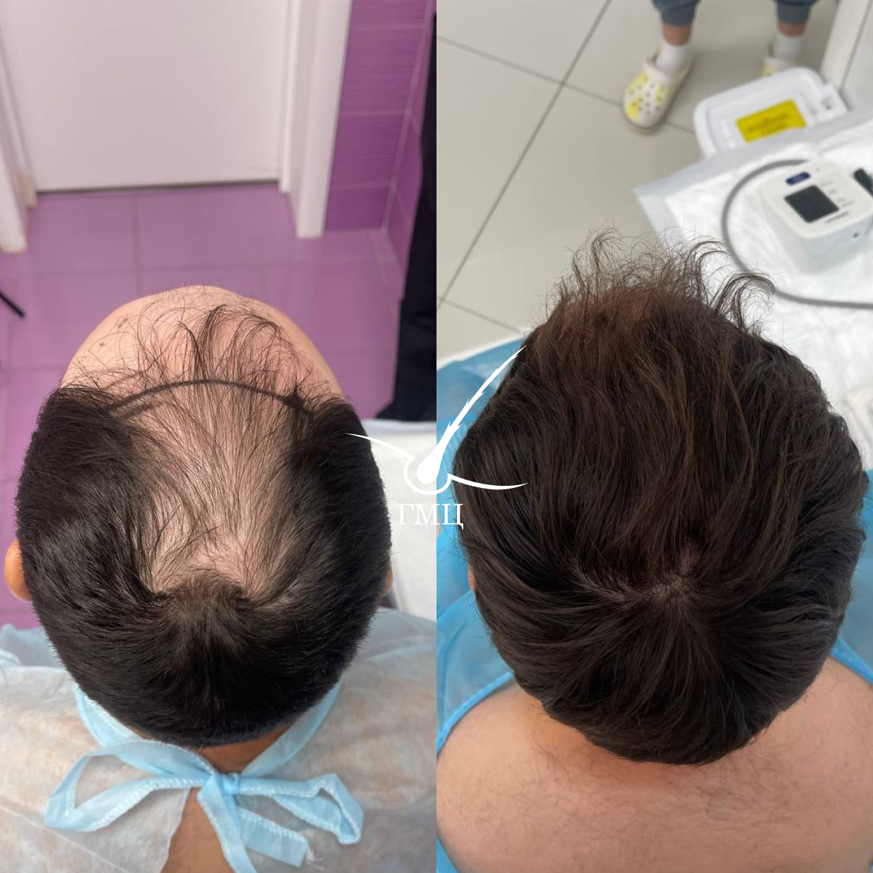 весочной части головы. Переживал очень. Отказывался фотографироваться, да и в целом стеснялся своих волос. Мы обратились в ГМЦ в Москве. Пересадили около 2300 графтов. По началу муж переживал из за образовавшейся корочки и покраснения, но как только вышел на работу, на него обрушился шквал ободряющих слов. Многие, кто так же переживают но не решаются( очень зря ) . Сейчас прошло не так много времени, но Промежуточный результат Просто волшебный. Муж счастлив. Я счастлива за него. От себя хотела бы отметить, высокий уровень сервиса. Профессионализм персонала. Узнала от врача, что можно добавить густоты волос в брови. Обязательно приду на данную процедуру, исправлять неудачный татуаж 👍👍👍