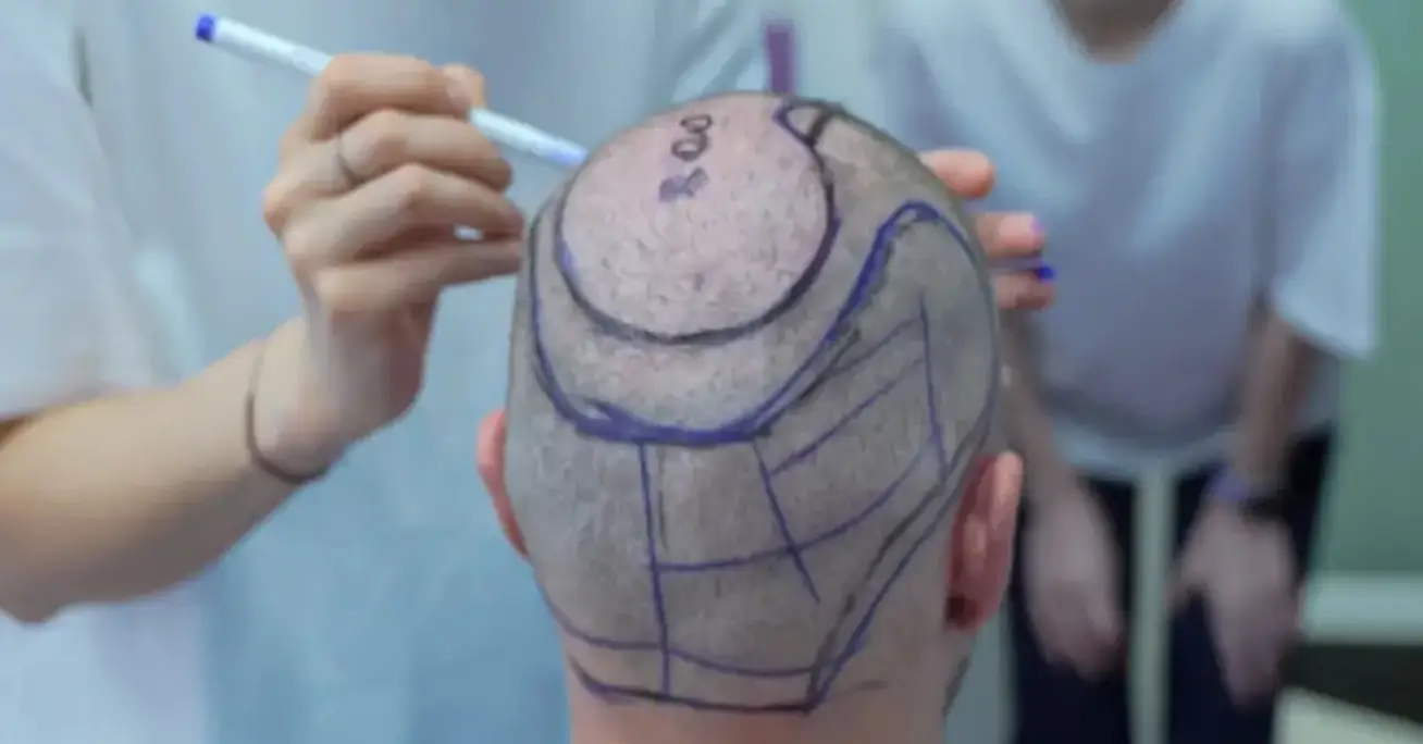 Проводится местная анестезия для полного обезболивания. На кожу наносится разметка согласно разработанному плану пересадки волос